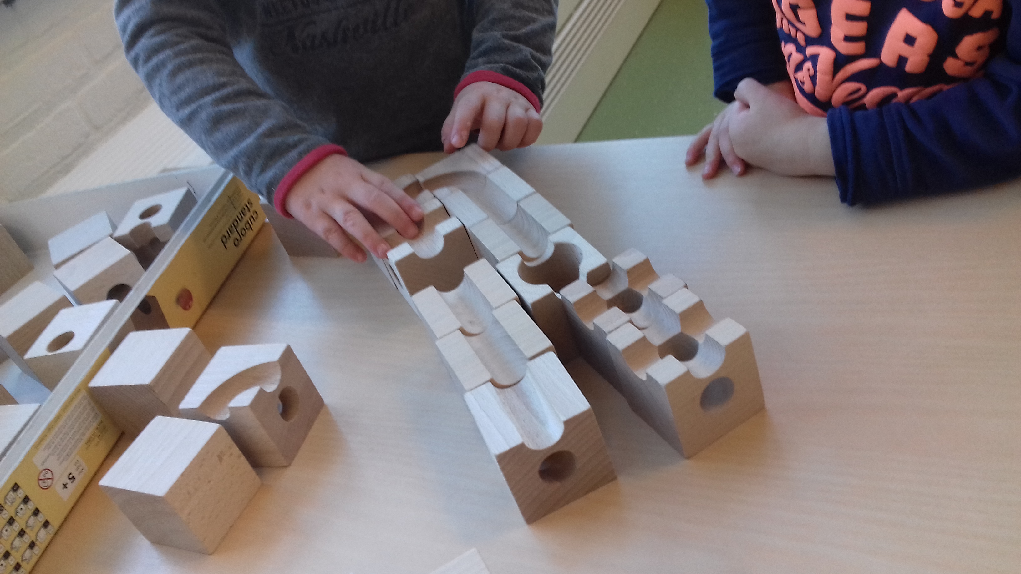 We hebben materiaal dat kinderen uitdaagt. Denk aan duplo, knikkerbanen en treinbanen. Kinderen die verder zijn, maken hiermee moeilijkere bouwwerken. Zo leren ze dat iets soms niet in één keer lukt. Dat is goed, want van fouten maken leer je. Kinderen leren door te spelen en te proberen.